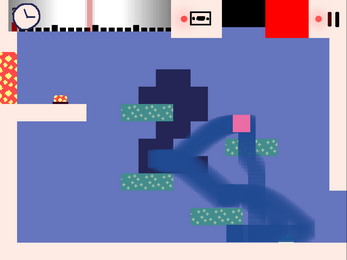 The tape continuously records 5 seconds of an object's movements which can be played back by pausing and seeking the tape. Your goal is to get to the next room.